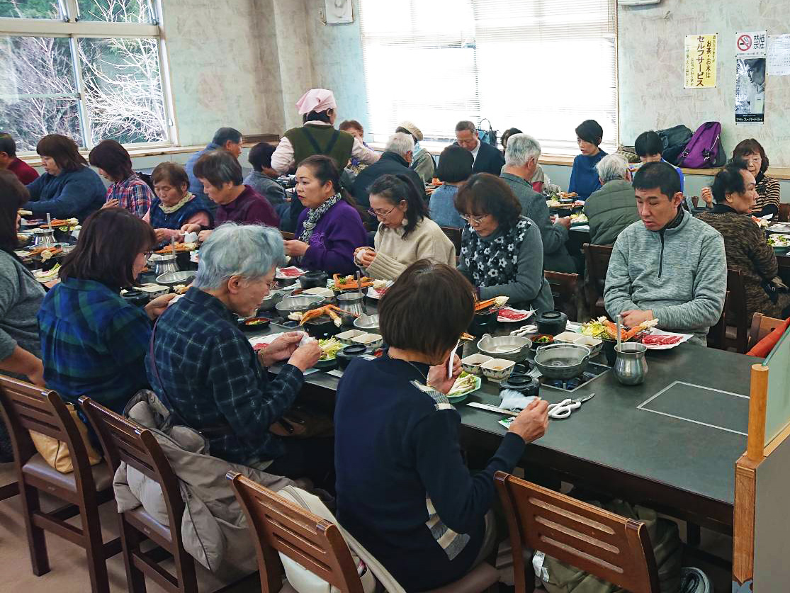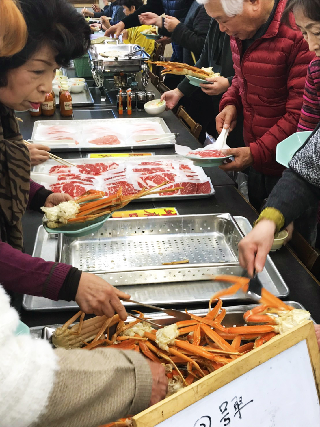 ➀ズワイガニ(足)②カニ飯③カニ入り茶碗蒸し④カニ汁⑤カニサラダ