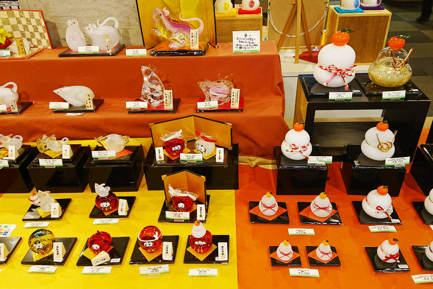 また、季節ごとに商品が違うのですが、今年はねずみ年ということもあり、干支のネズミや鏡餅までガラスでできておりました!!!