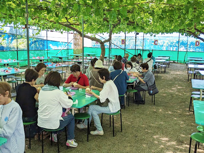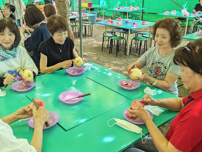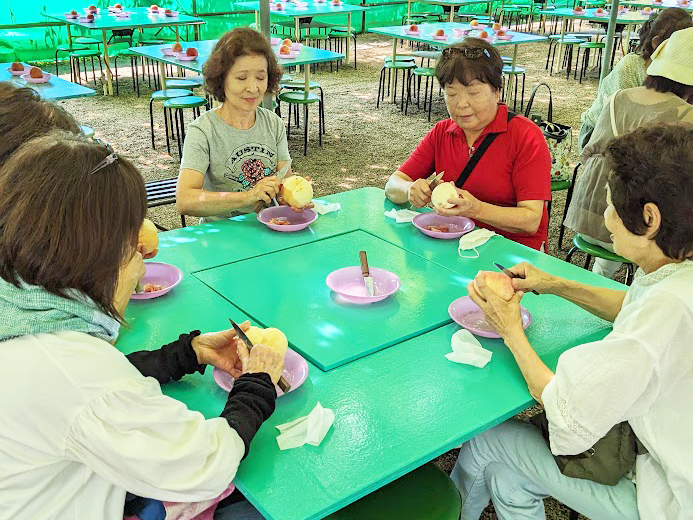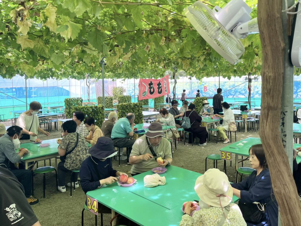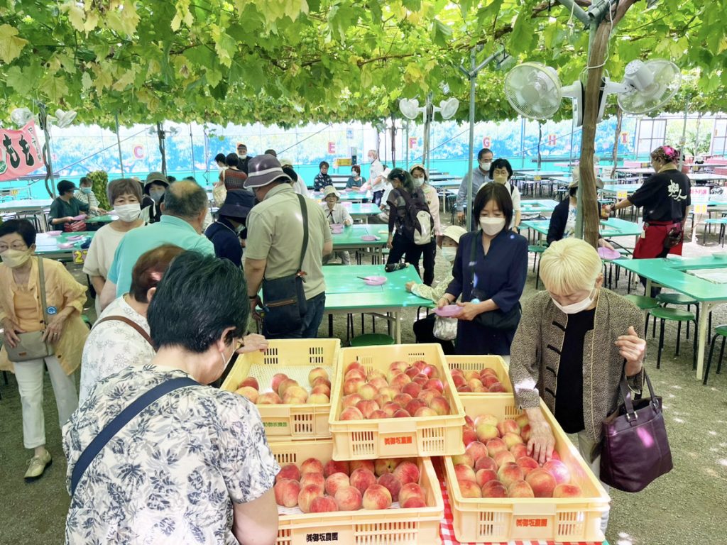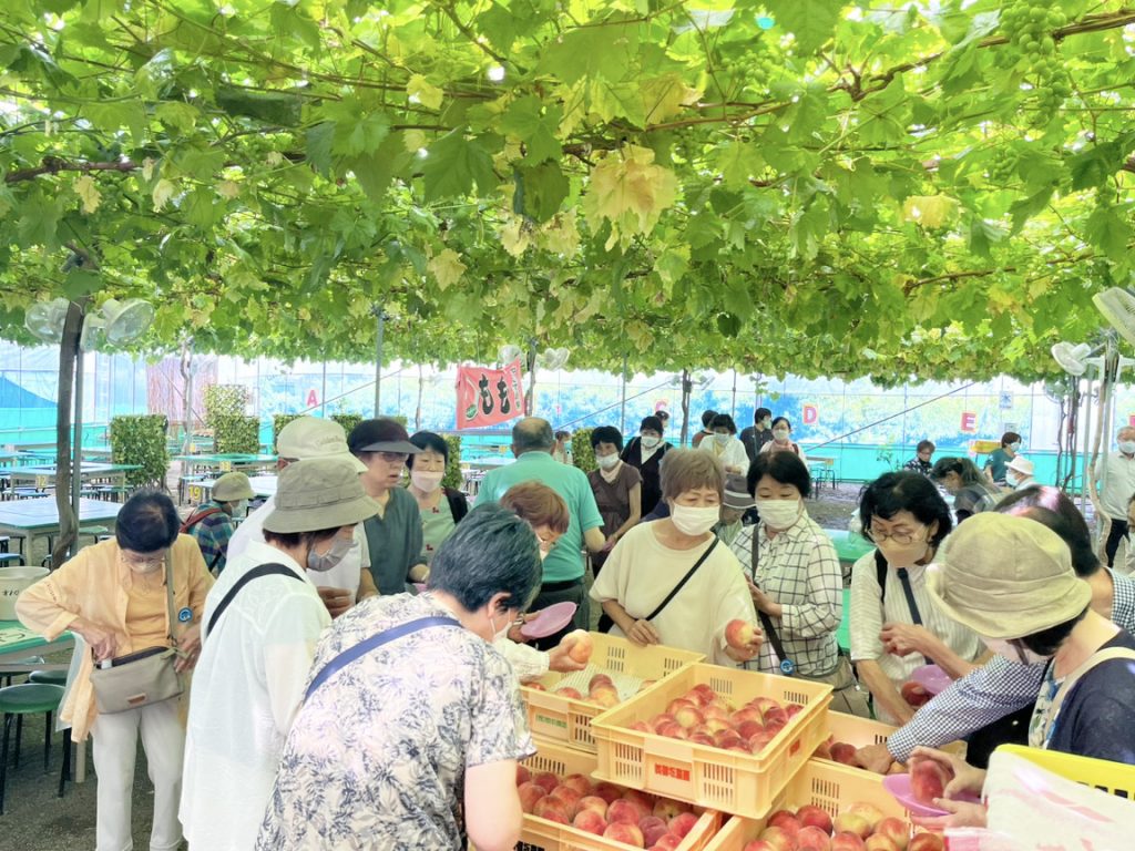 桃の生産量が日本一の山梨県!今回は御坂農園で、なんと桃の食べ放題!農園の方が収穫した桃がたくさん並んでいます!甘くて美味しい桃を皆様お腹いっぱい召し上がっていただきました!